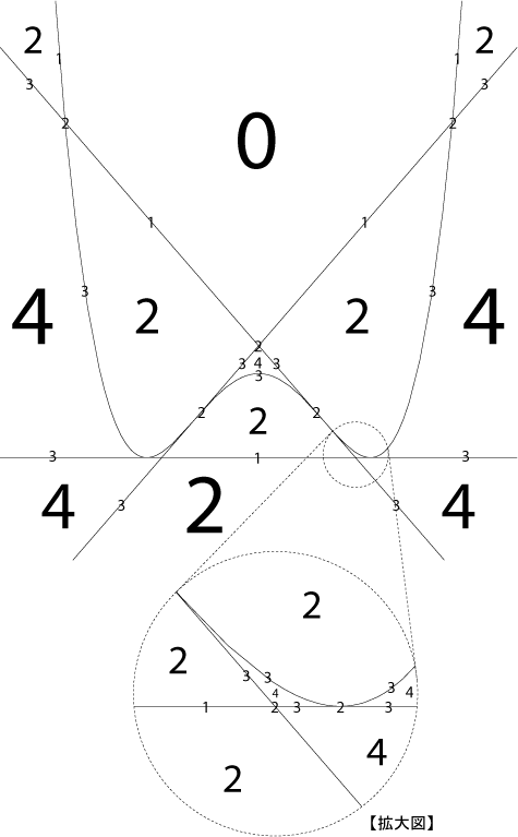 - $a>1$ のとき, $f(-1)<0$ かつ $f(1)>0$ かつ $f(a)<0$ であればよい.